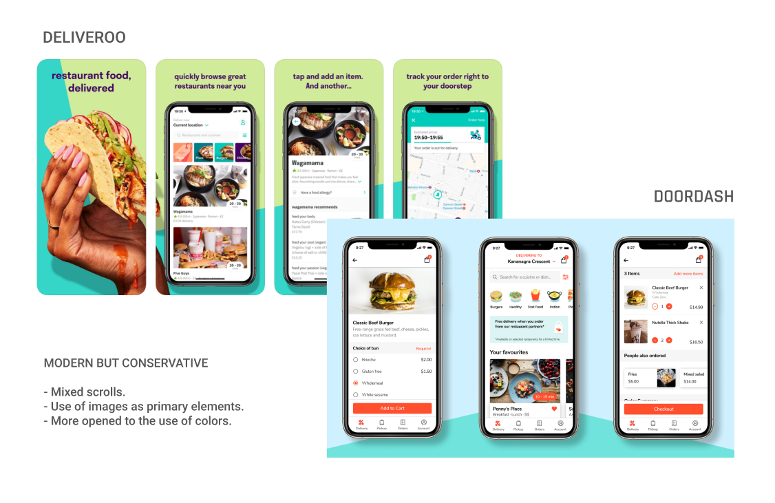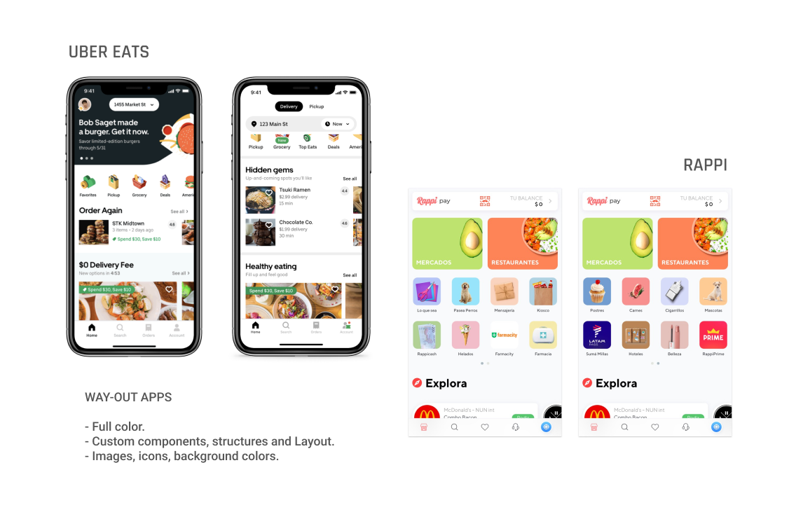 I started with a market study focused on apps with strong adoption across Colombia, the US, and Europe. Instead of collecting screenshots, I extracted patterns that consistently shape modern delivery experiences: