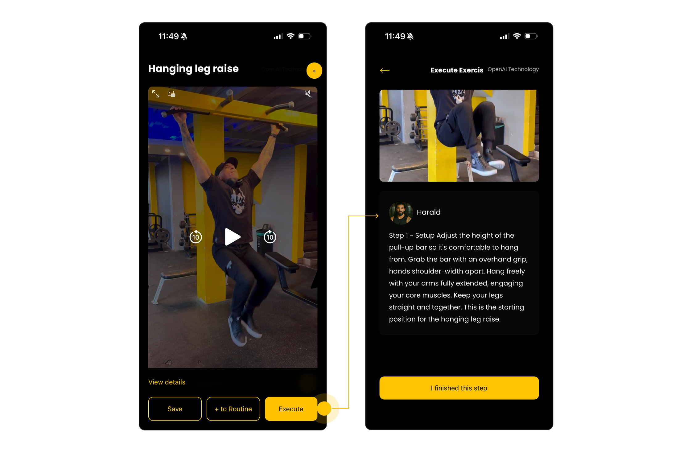 Execute mode guides users through each step of the exercise, raising confidence and reducing guesswork.